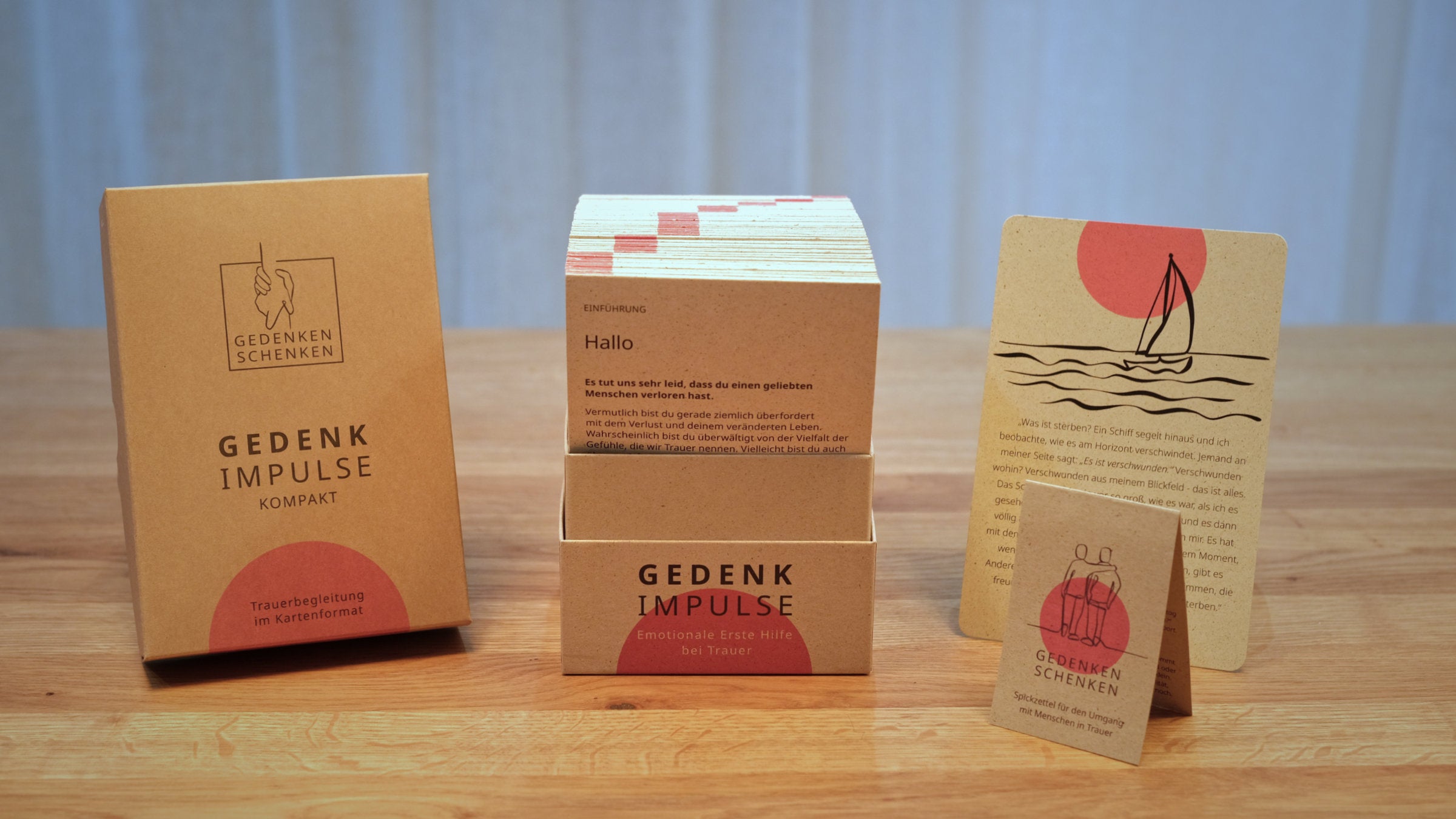 Die Gedenkimpulse Kompakt sind der sanfte Einstieg: kleiner, günstiger, leicht zu verschenken. Das große Set mit 108 Gedenkimpulsen ist für alle, die sich eine umfassende Begleitung über viele Themen und Situationen hinweg wünschen.